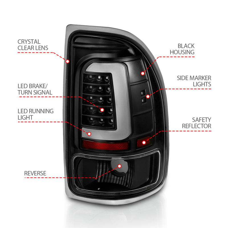 ANZO 1997-2004 Dodge Dakota LED Taillights Black Housing Clear Lens Pair