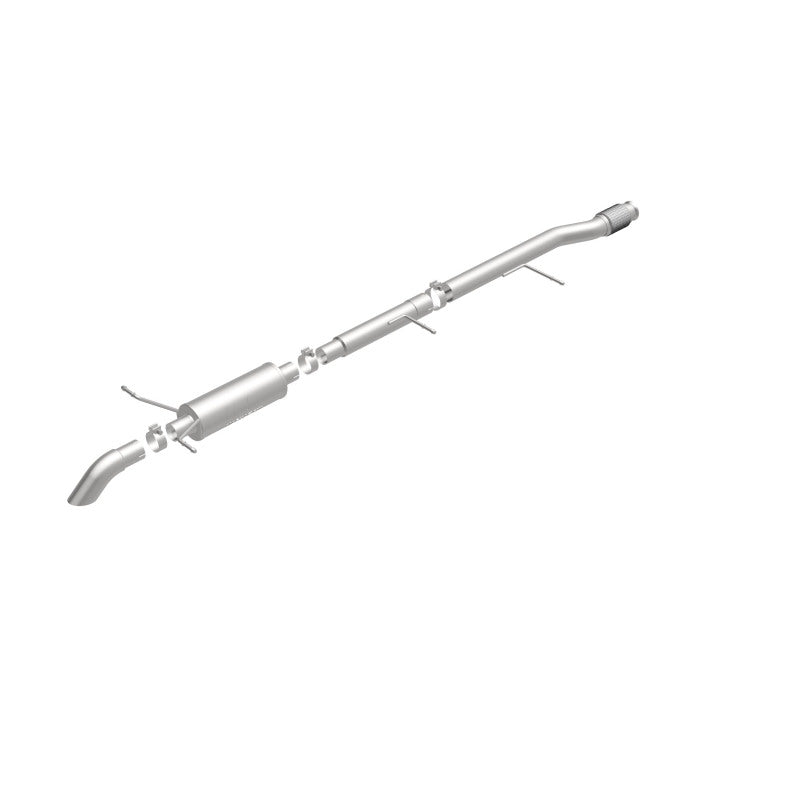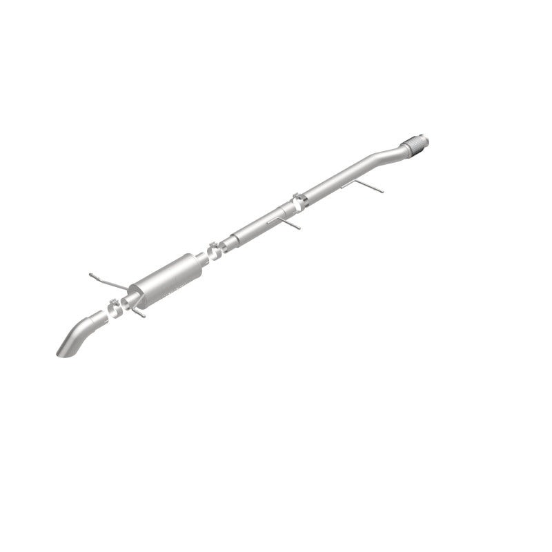 The MagnaFlow Off-Road Pro Series Cat-Back Performance Exhaust System 17146 17146 brings additional off-roading prowess and our deep signature exhaust note to your Truck with a weight-optimized, dyno-tested, corrosion resistant and durable stainless steel design engineered to closely hug the undercarriage for improved ground clearance. Exhaust kit 17146 is engineered to produce Very Aggressive exterior and Aggressive interior sound levels. Extensive 3D scanning was used during the development of this Truck exhaust system to create a direct-fit design, enabling a do-it-yourself installation process. 17146's emissions-legal cat-back design replaces all your truck's exhaust components from the catalytic converter on back with its 3in. diameter mandrel bent main piping that passes through 1 Straight-Through mufflers before ending in a turndown before rear axle exit with 3in. Satin Clamp-On Single Wall Turndown Cut Edge tips. Exhaust system 17146 is produced using advanced CNC precision robotic manufacturing techniques and backed by MagnaFlow's limited lifetime warranty.
